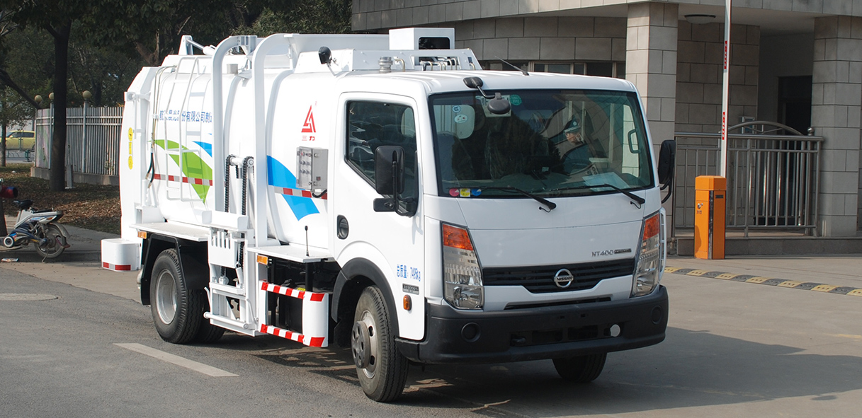 CGJ5071TCA型餐廚垃圾車是對賓館、餐廳、食堂的廚余垃圾、食品加工的廢料、副食品集貿市場和超市的過期商品等直接收運的專用車輛。該產品通過底盤取力器驅動液壓泵,產生高壓油,帶動液壓系統工作,從而提桶機構和頂蓋工作,將垃圾桶內垃圾倒入箱體;到指定地點,打開后門,推出推板進行卸料,完成作業。